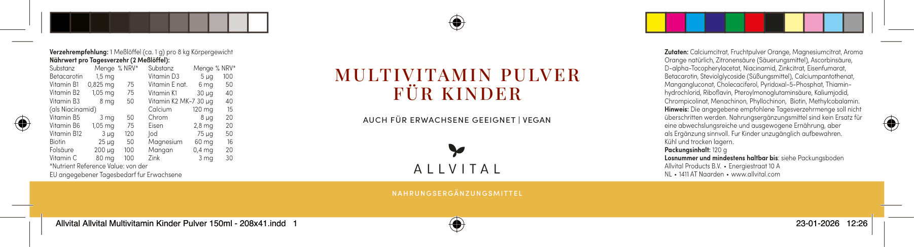 La combinaison soigneusement équilibrée de 14 vitamines à absorption optimale et de 7 minéraux et oligo-éléments complète spécifiquement l'alimentation quotidienne et soutient un développement sain à tout âge. La formule contient la vitamine D, les huit vitamines du groupe B, les vitamines K1 et K2, le bêta-carotène (en tant que précurseur de la vitamine A), la vitamine C, ainsi que du calcium, du magnésium, du fer, du chrome, de l'iode, du zinc et du manganèse. Ces micronutriments contribuent, entre autres, au développement osseux, au fonctionnement normal du système immunitaire, au développement cognitif et à un métabolisme énergétique sain, en remplissant par ailleurs de nombreuses autres fonctions physiologiques au sein de l'organisme.
